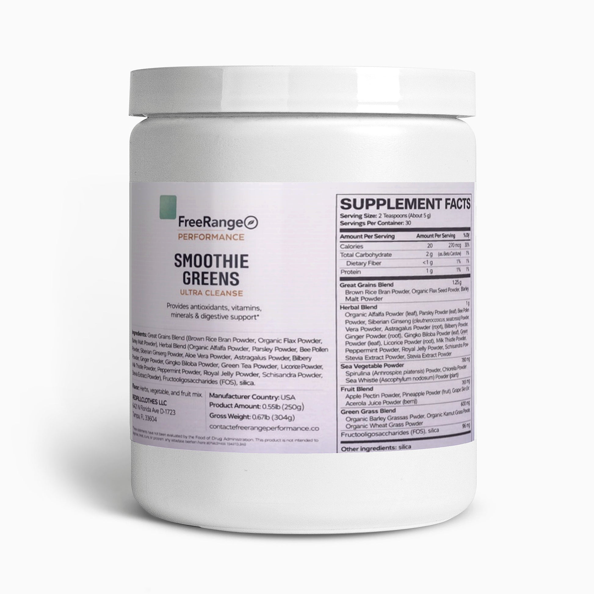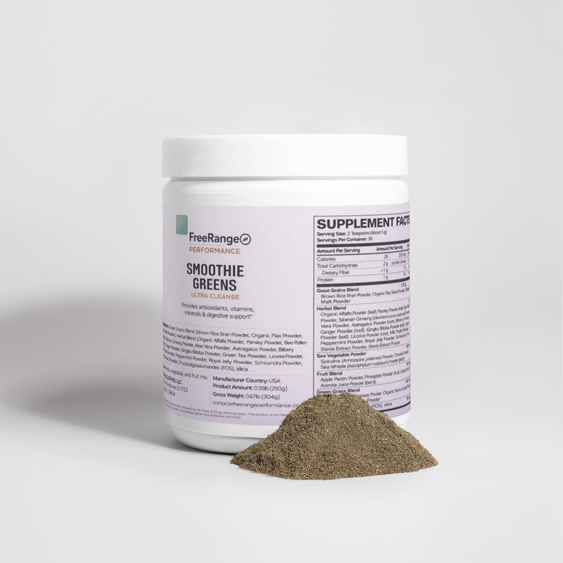 Ultra Cleanse Smoothie Greens is a blend of organic grasses, superfoods, and botanical extracts designed to fuel the body with broad-spectrum nutrients for optimal mental and physical functionality.